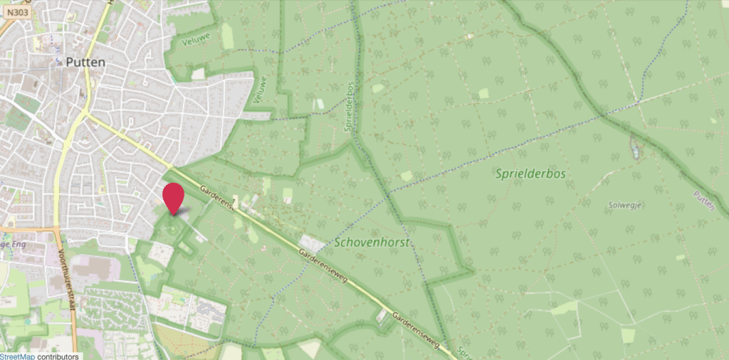 Ingang bij het tweede hek aan de boskant (bij de eekhoorn en het uithangbord). Het atelier bevindt zich in het bijgebouw aan het bos.